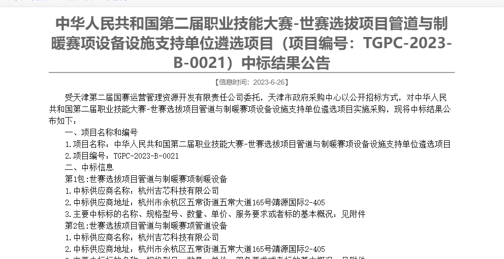 熱烈祝賀我司“職教事業(yè)部”,順利通過“中華人民共和國第二屆職業(yè)技能大賽-世賽選拔項目管道與制暖賽項設備設施支持單位”遴選,屆時,我司將全力做好賽事設備、技術保障及支持工作,預祝中華人民共和國第二屆職業(yè)技能大賽舉辦取得圓滿成功。