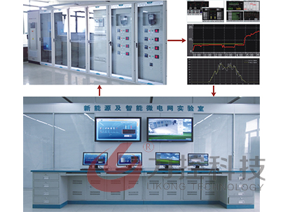 本系統(tǒng)由五個(gè)典型部分組成,分別儲(chǔ)能系統(tǒng)、供配電系統(tǒng)、監(jiān)控調(diào)度系統(tǒng)、環(huán)境監(jiān)控云服務(wù)系統(tǒng)、負(fù)載系統(tǒng)、及發(fā)電系統(tǒng),其中發(fā)電部分有風(fēng)力發(fā)電和太陽能發(fā)電及氫能源組成。微網(wǎng)系統(tǒng)具備:發(fā)電部分(分布式電源)、RLC可編程負(fù)載、智能開關(guān)柜單元、后臺(tái)監(jiān)控調(diào)度系統(tǒng)。