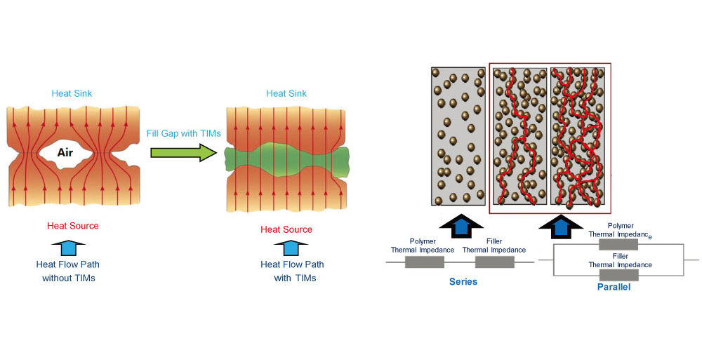 ◆ 實現特定導熱性的特殊填料: 1.5 W/(m.K) ~~ 17 W/(m.K)