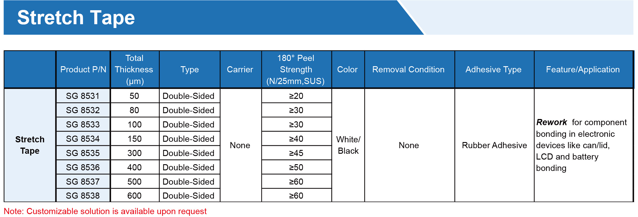 提供各種膠帶,由PET、無紡布、泡沫、涂有丙烯酸、硅樹脂、橡膠、熱熔、熱轉化粘合劑的PI基材制成。可提供各種寬度、長度和釋放襯墊,以滿足特定需求,專為工業、商業和家庭應用的特殊環境而設計。
