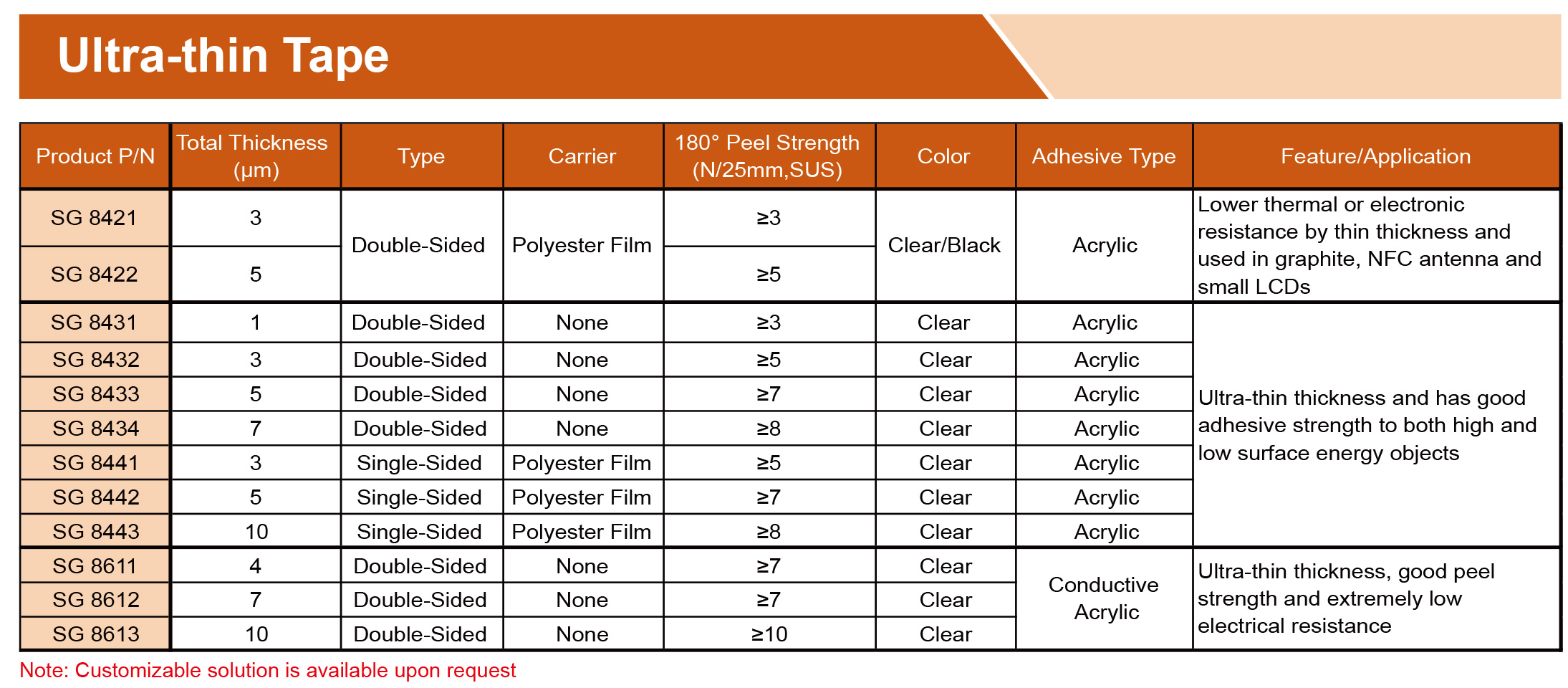 提供各種膠帶,由PET、無紡布、泡沫、涂有丙烯酸、硅樹脂、橡膠、熱熔、熱轉(zhuǎn)化粘合劑的PI基材制成??商峁└鞣N寬度、長度和釋放襯墊,以滿足特定需求,專為工業(yè)、商業(yè)和家庭應(yīng)用的特殊環(huán)境而設(shè)計。